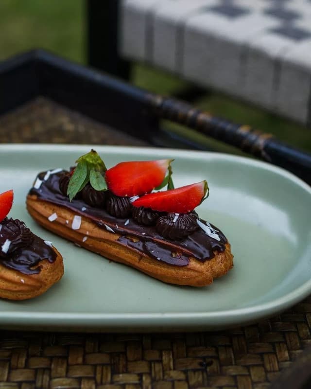 Sip, savor, and indulge in the tastes like a - STRAWBERRY CHOCOLATE ECLAIR.